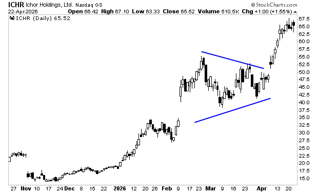 Ichor Holdings (ICHR) makes the precision plumbing systems inside chip-making machines that control the exact flow of gases and chemicals used to manufacture semiconductors. Its stock is breaking out in a big way.
