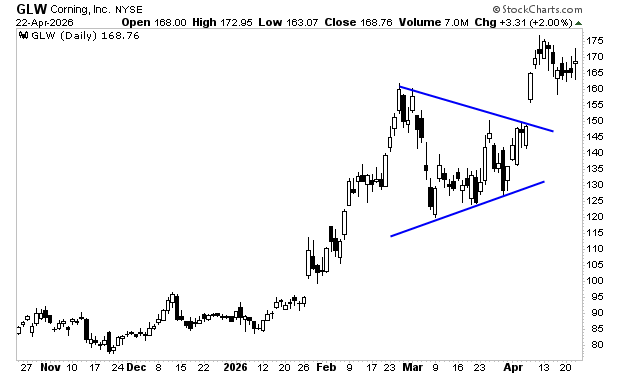 Corning (GLW): their optical fiber is the backbone of the data center networks that connect thousands of servers together.